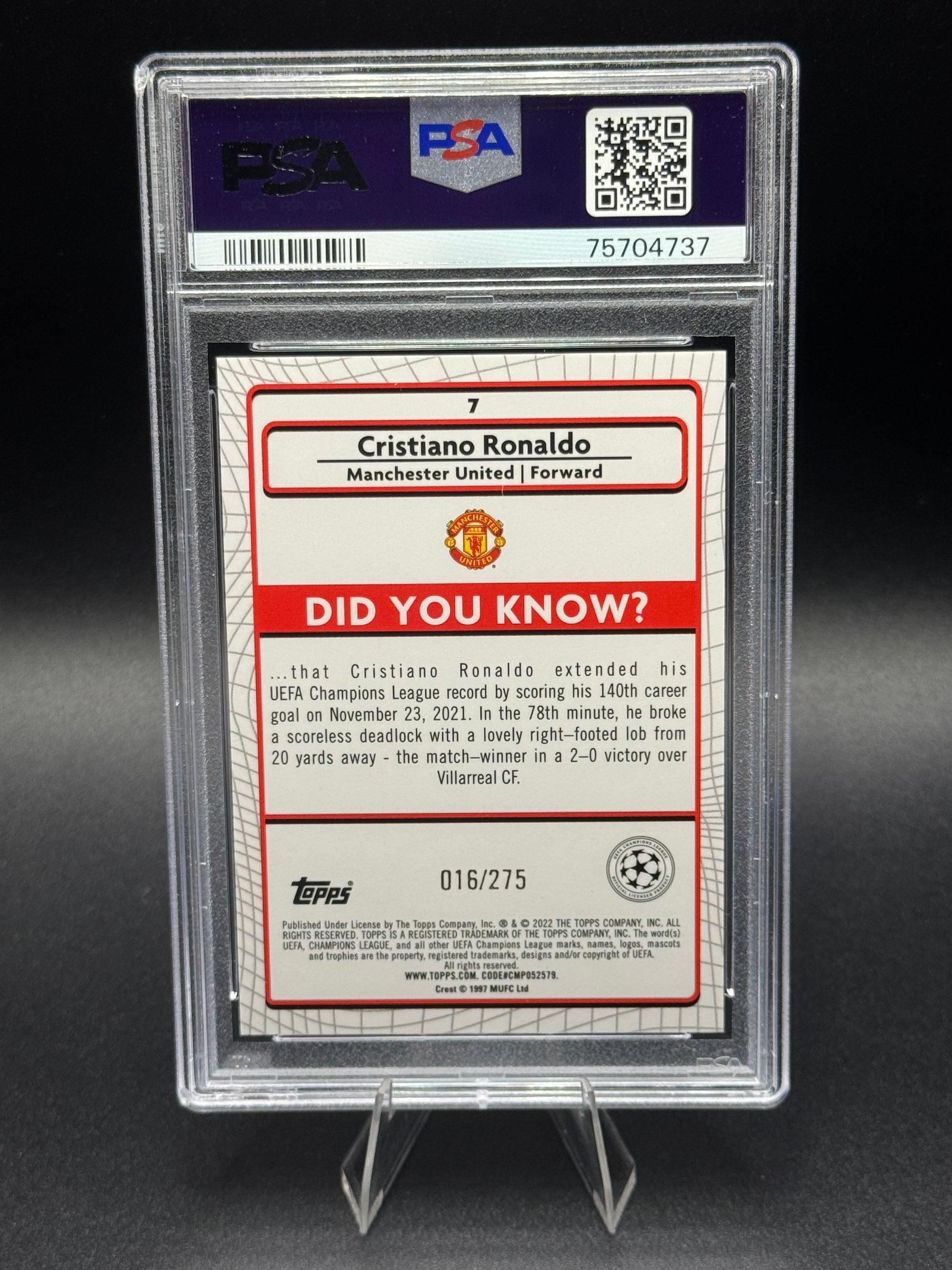 2021-22 Topps Merlin #7 Cristiano Ronaldo Pink Mojo Refractor /275 PSA 10