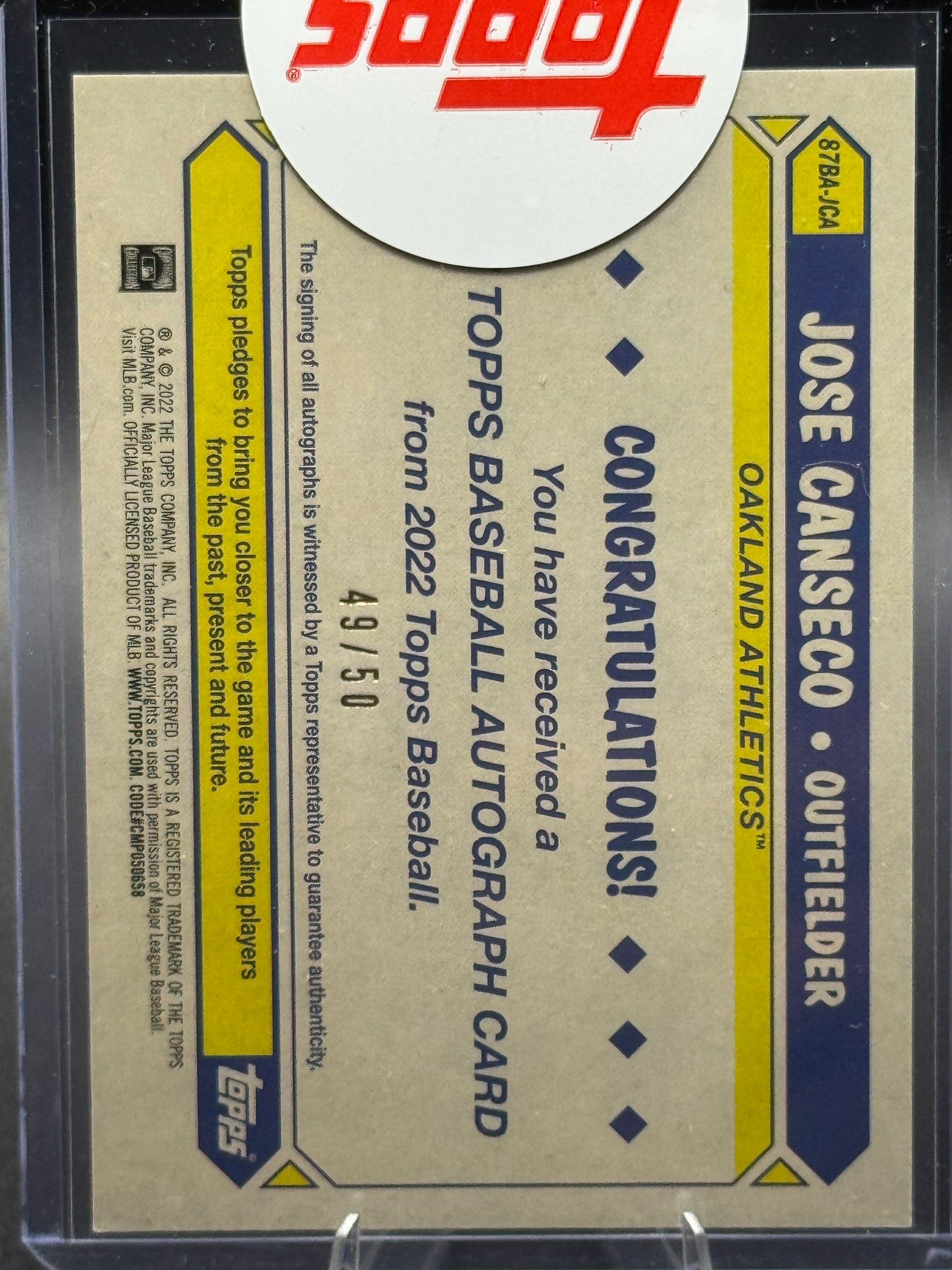 2022 Topps 1987 35th Anniversary Jose Canseco Auto Gold /50